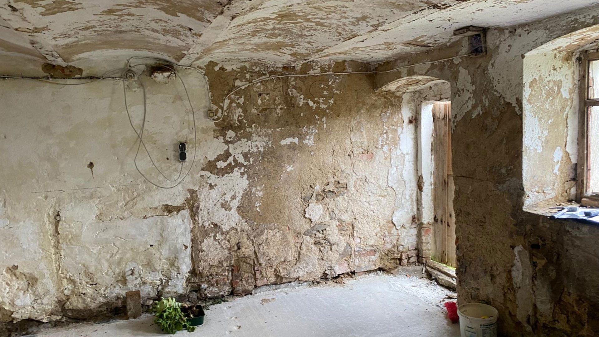 Freilegen und Sandstrahlen einer Gewölbedecke – vorher